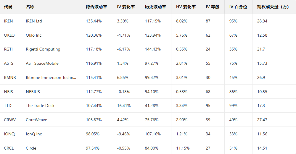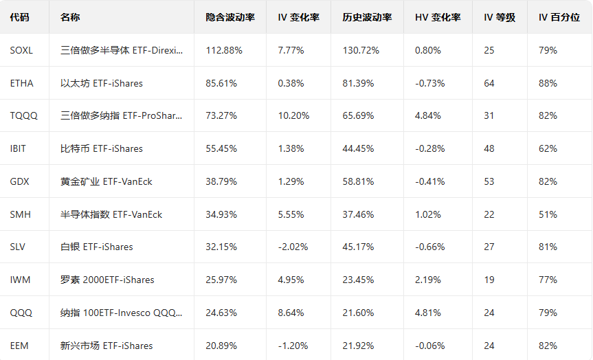 美股ETF引申波幅排行榜前十(标的要求:市值>100亿美元)