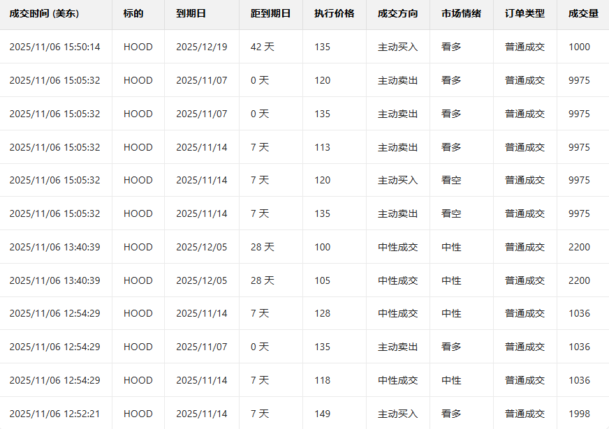 2、Robinhood上一交易日跌10.81%,前一日认沽/认购比例小幅下行,成交量大幅度上行。