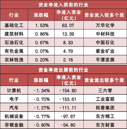 【7日资金路线图】两市主力资金净流出近300亿元 基础化工等行业实现净流入