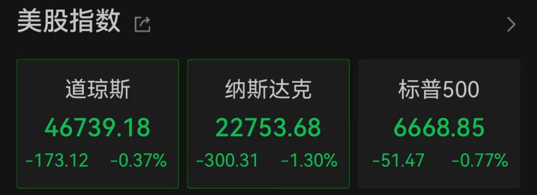 大型科技股普跌,特斯拉、英伟达、甲骨文均跌超3%。