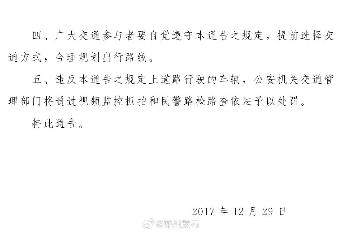 郑州恢复执行机动车限行措施