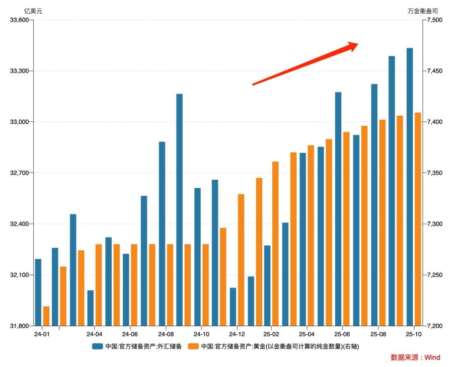 黄金储备方面,2025年10月末官方黄金储备连续第十二个月增加。