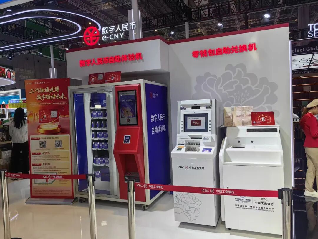 在工商银行境外展团的区域内,醒目地放置着一台数字人民币自助体验机,机器的顶端展示着工行为进博会8周年特别推出的纪念版数字人民币硬钱包。除了可爱的进博会熊猫LOGO设计外,这款数字人民币可视卡还能即时展示钱包和红包余额,游客现场便可办理领卡、即时体验数币支付,并免费获得一份进博会纪念品盲盒等产品。“我们的数字人民币硬钱包非常受欢迎,昨天就办理发放了300多张,今天预计会比昨天更多。”现场工作人员告诉记者。