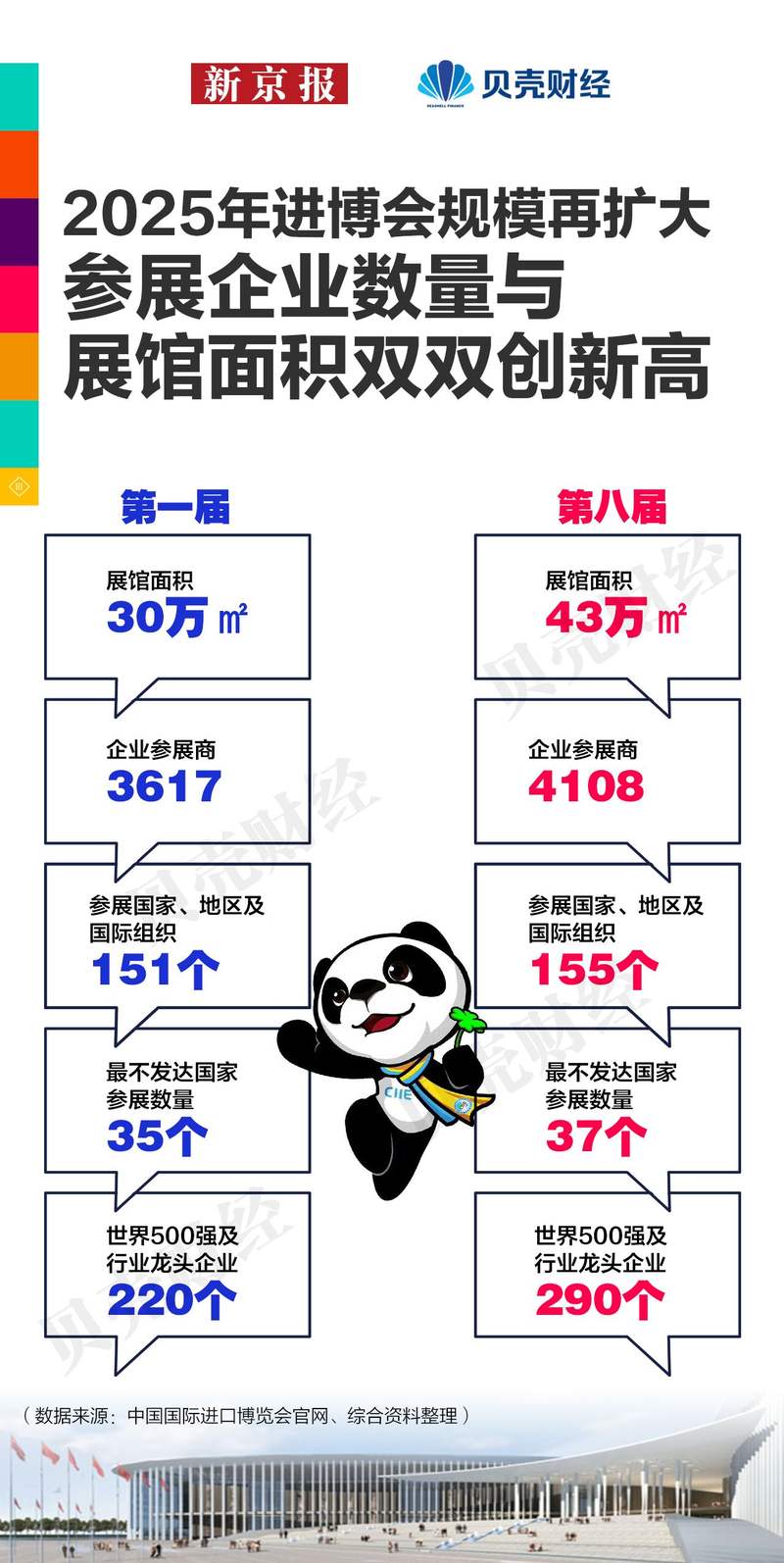 今年的进博会于11月5日至10日在上海举办,155个国家、地区和国际组织汇聚一堂,有哪些新看点?哪些新面孔在展会上亮相?作为世界第二大进口市场,中国2025年向世界买了什么?哪些国家和产品最受中国“购物车”青睐?新京报贝壳财经记者透过数据带你解读这场开放盛会。