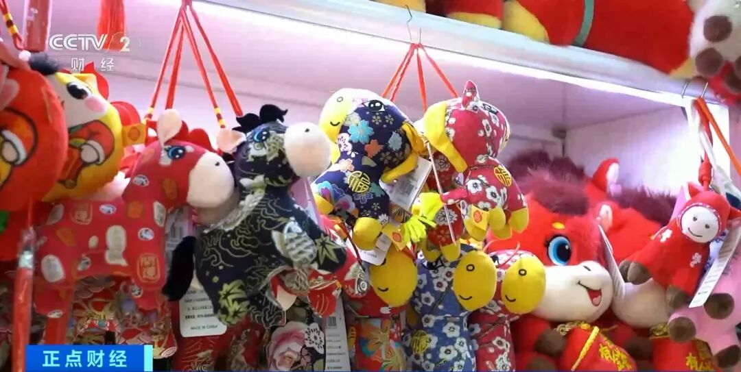而在毛绒玩具销售区,不少马年生肖产品已被摆放在各家店铺的显眼位置,吸引了不少采购商下单。经营户表示,目前马年生肖产品已经进入销售的高峰期,为了应对随时出现的爆单情况,工厂已开足马力,加班加点安排生产计划。