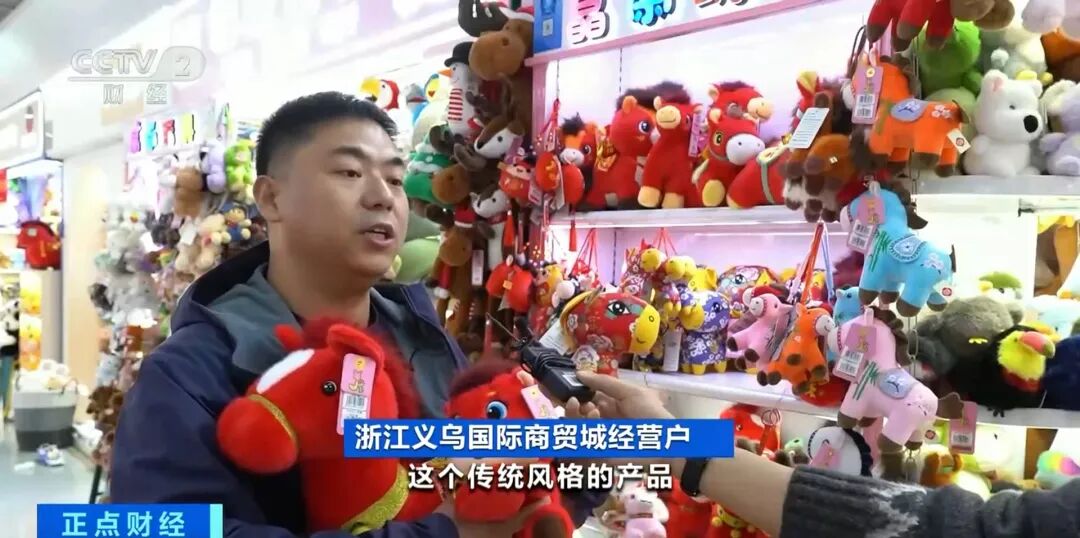 浙江义乌国际商贸城经营户:国内采购商喜欢新潮一点的,国外的采购商喜欢传统一点的。这一款马已经被预订了几万个,很受欢迎。