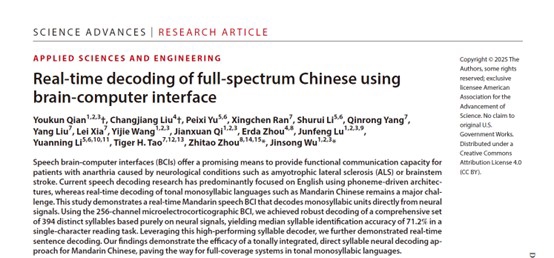 汉语,作为全球使用人口最多的声调语言,单音节、声调载义、同音异形字密集,一直是脑机接口领域公认的“无人区”。