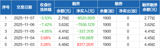 福昕软件融资融券信息显示,2025年11月7日融资净偿还8520.99万元;融资余额2.76亿元,较前一日下降23.56%