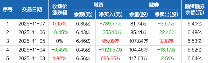 隧道股份:融资净偿还789.77万元,融资余额6.35亿元(11-07)