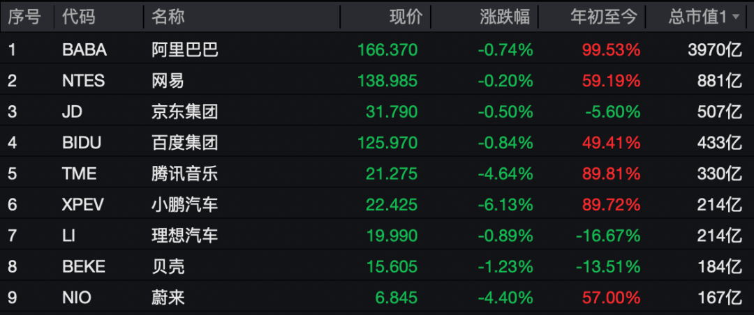 热门中概股多数下跌,纳斯达克中国金龙指数跌0.96%。小鹏汽车大跌6.13%,蔚来跌4.4%。本周,纳斯达克中国金龙指数累跌2.62%。