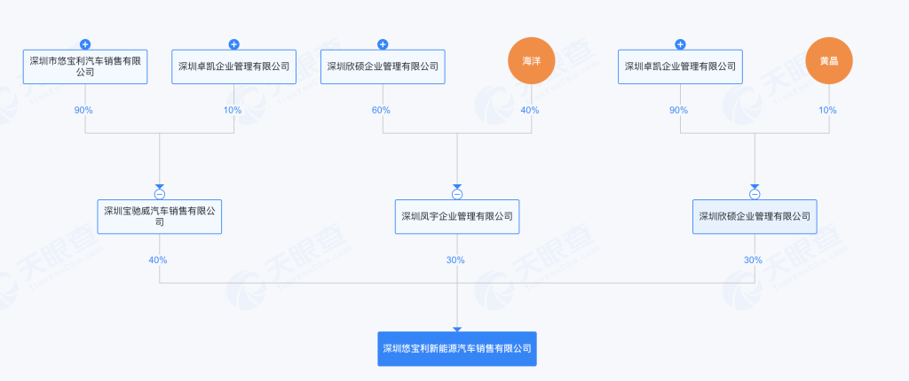查询的信息显示,深圳凤宇入股的深圳悠宝利新能源汽车销售有限公司的股东名单中也有黄晶的身影。