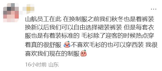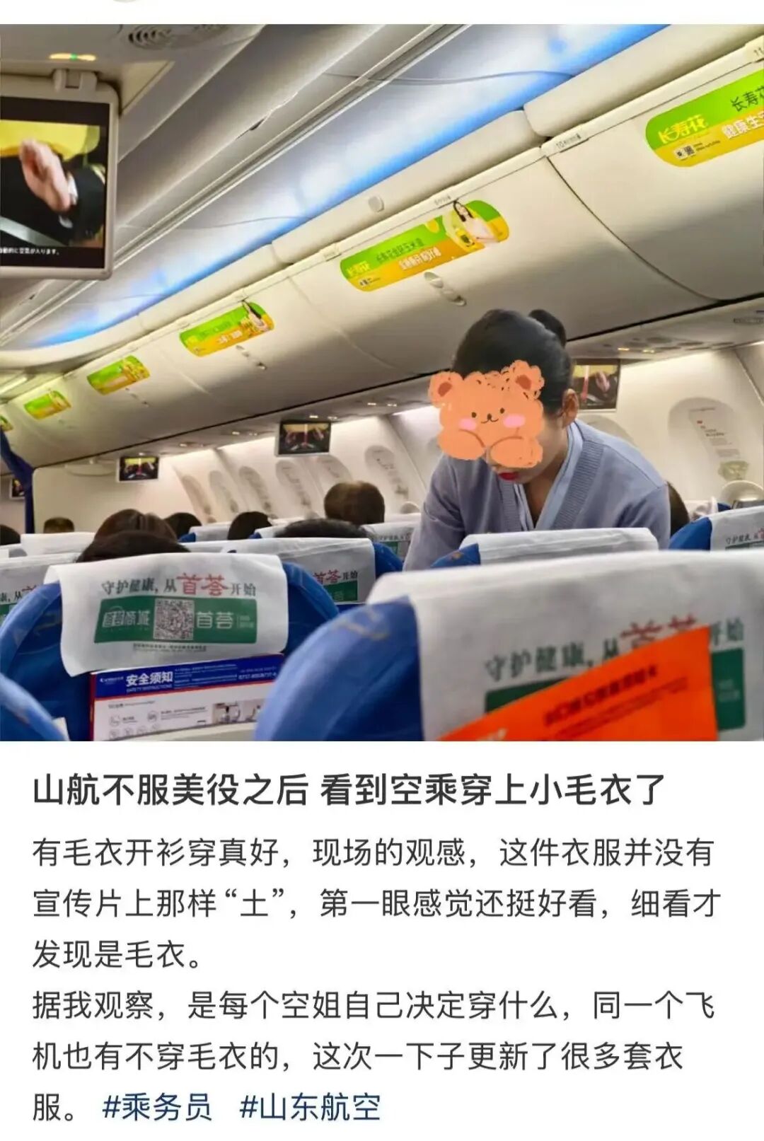 消息一出,引发网友热议。有人点赞山航“不服美役”,也有网友表示“羊毛衫+裤装”穿上看起来很“土”“月嫂风”。