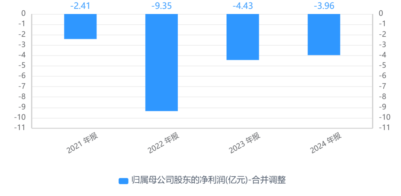 纵观近年业绩,雷科防务已经连续4年亏损,今年前三季度亏损有所收窄。2021年至2024年,公司归母净亏损分别为2.41亿元、9.35亿元、4.43亿元、3.96亿元。