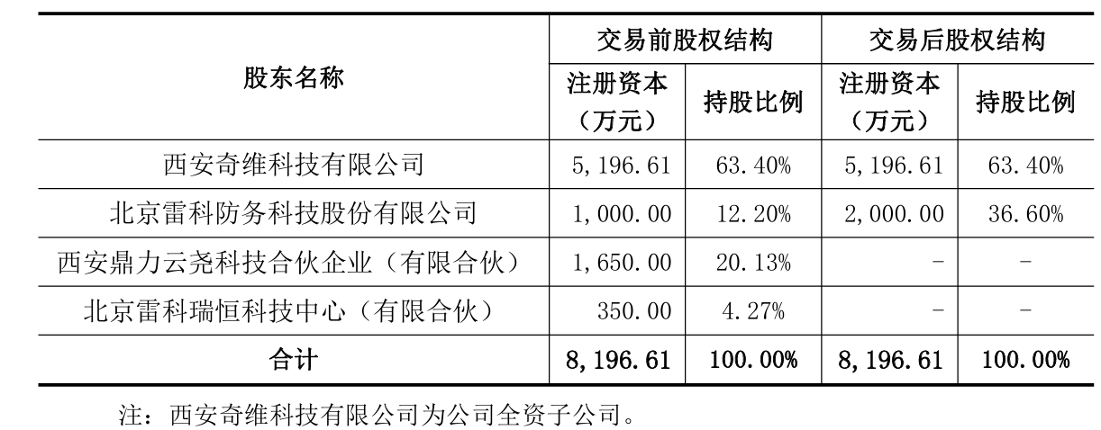 公告披露,交易对方西安鼎力云尧科技合伙企业(有限合伙)的执行事务合伙人为公司持股5%以上股东刘峰及一致行动人之一刘升;交易对方北京雷科瑞恒科技中心(有限合伙)的执行事务合伙人北京雷科众联科技有限公司为公司董事长高立宁、董事兼总经理刘峰及刘升共同出资设立的有限责任公司。