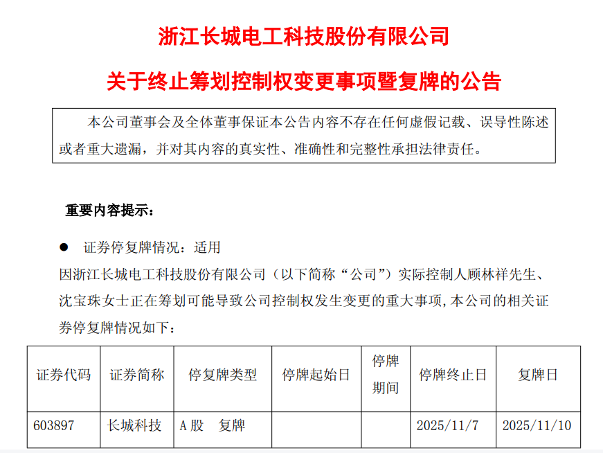 终止筹划控制权变更!长城科技 下周一复牌