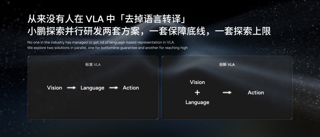 这一架构创新的意义深远。传统VLA模型采用“视觉→语言→动作”的转换流程,不仅导致大量视觉细节丢失,还增加了推理延迟。而小鹏的第二代VLA采用“视觉+语言→隐式Token→动作”架构,减少了传统VLA的语转译环节,不依赖类语作为中间媒介,有效解决转译延迟带来的执行效果不佳等问题,让AI能够像人类一样直观感知并决策,实现了更本质的物理世界理解。