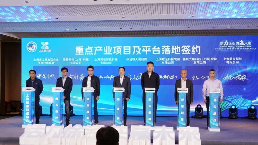 活动现场发布徐泾镇新一代信息技术产业赛道规划,明确以具身智能、新型智能终端、电子模组为产业重点发展细分领域。随后,上海敏泾科技发展有限公司、上海崧信智能科技有限公司、钜泉光电科技(上海)股份有限公司、鹰石热控(上海)科技有限公司、上海茹天科技有限公司5家企业与徐泾镇签署合作协议,涵盖芯片研发、智能控制、热管理技术等领域,为区域科技创新注入硬核力量。同时,徐泾镇携手上海市工商业联合会信息技术商会将进一步深耕新一代信息技术产业,发挥青东地区重要引领作用。