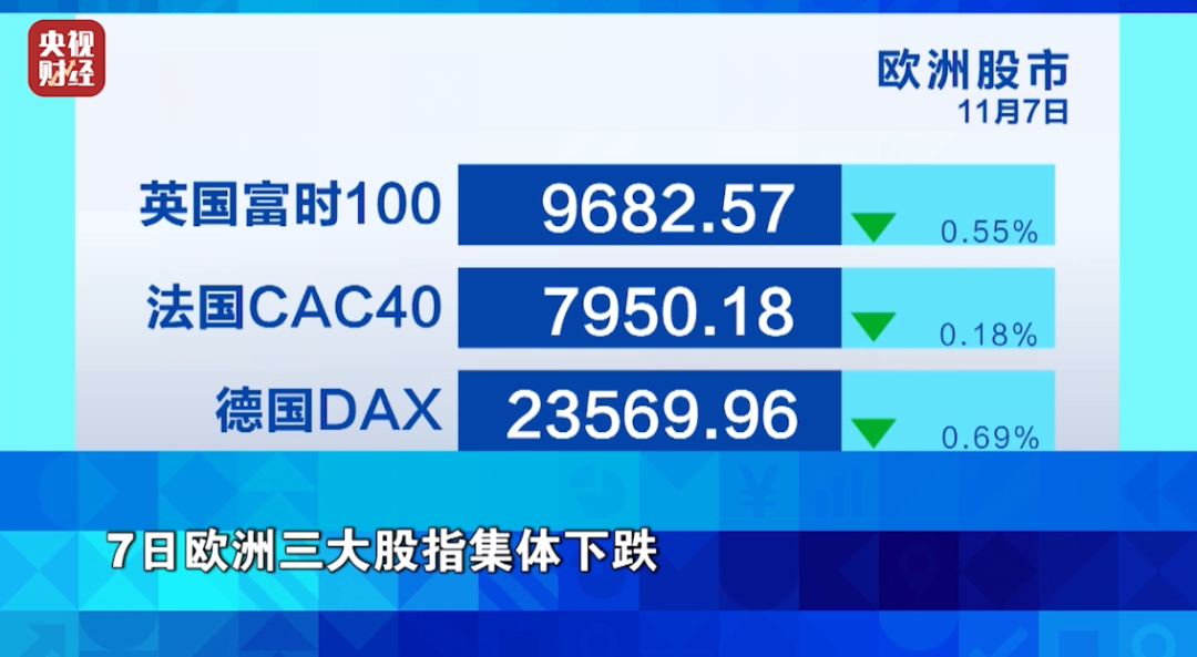 欧洲方面,科技股延续前一日跌幅,截至收盘,欧洲三大股指集体下跌,其中英国富时100指数跌0.55%,法国CAC40指数跌0.18%,德国DAX指数跌0.69%。数据面上,德国联邦统计局周五发布的数据显示,9月德国出口额环比意外获得增长超1%;9月进口额环比上升3.1%,分析认为这一增长可能表明德国国内市场需求有所回暖。