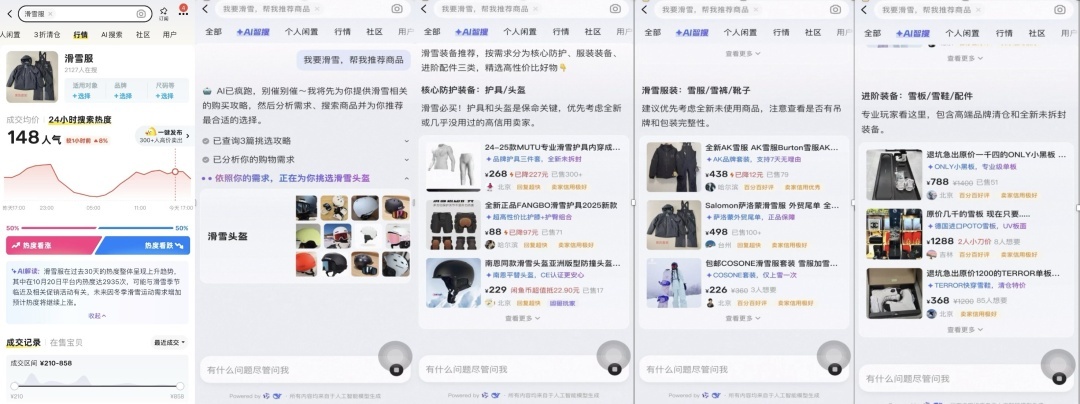 (以“滑雪服”为例,AI行情呈现热度价格趋势,AI智搜定制选购方案)