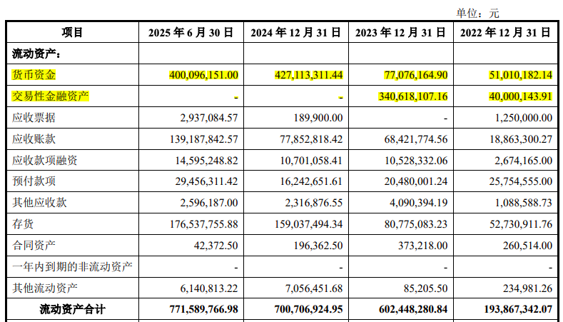 根据招股书(上会稿),本次IPO恒运昌调整了募集资金投资项目规模,拟使用募集资金投入金额为14.69亿元投向“沈阳半导体射频电源系统产业化建设项目”等5大项目,其中1.69亿元拟用于补充流动资金。但截至2025年上半年,公司账面货币资金已达4亿元,交易性金融资产(结构性存款及理财产品)在2023年更是高达3.41亿元,资金极为充裕。