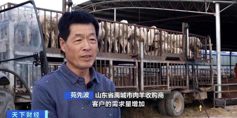 山东省禹城市肉羊收购商苑先波:冬季到了,客户的需求量增加,肉羊价格也上涨,以前每天拉一车、两车,现在每天好几车。