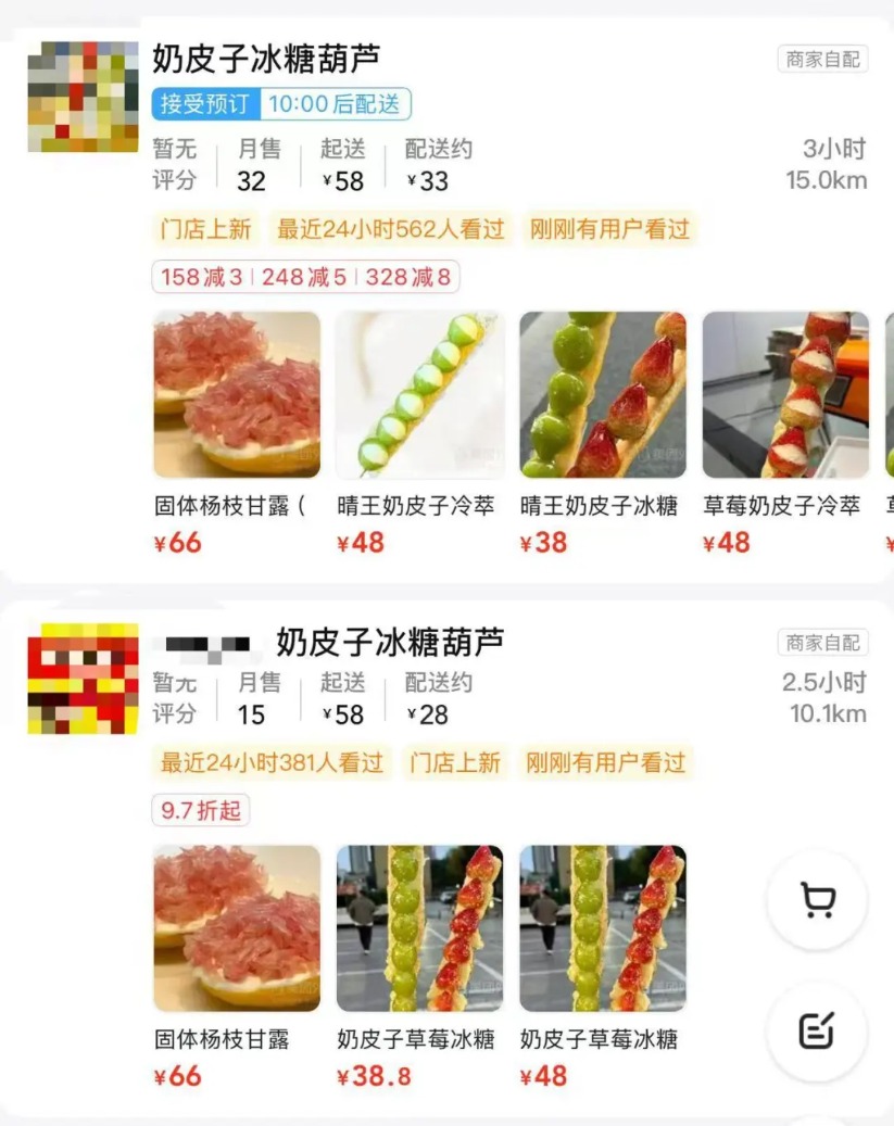 记者搜索发现,甚至有奶皮子糖葫芦商家在自家商店上架了固体杨枝甘露,主打一个啥也不落下。不过并不是每一阵风潮都得跟随,有甜品店店主直言自己复刻过这个品,但感觉口味一般达不到上架标准就没有卖。