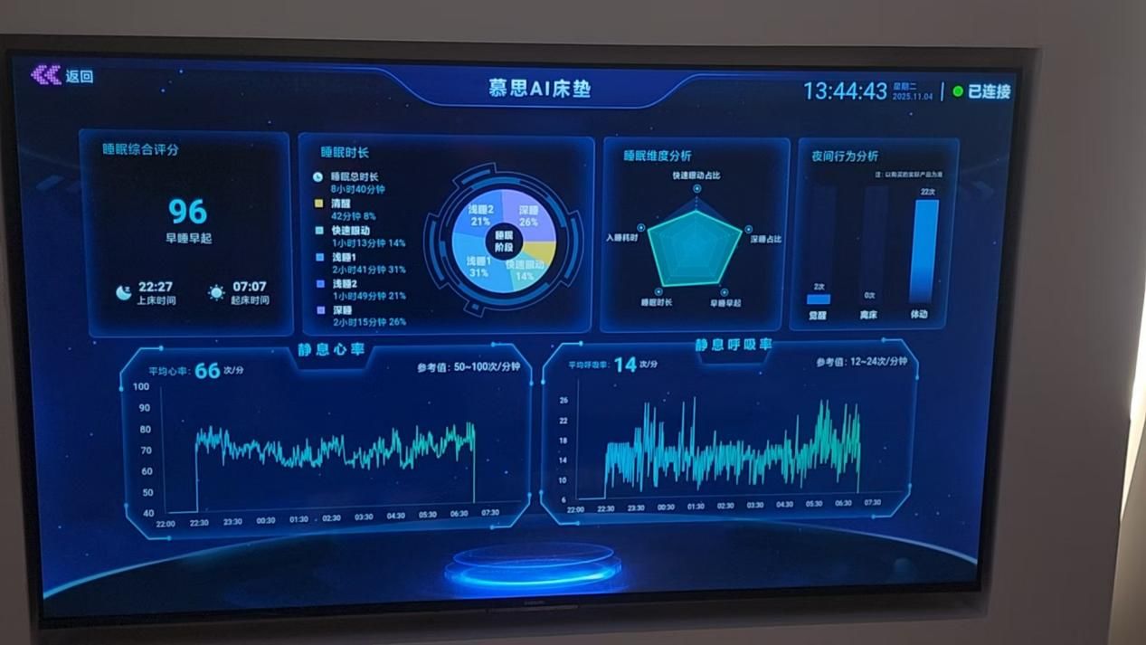 另一类则是内置芯片的智能床垫产品。与弹簧床垫相比,这类AI床垫由AI芯片、驱动引擎、柔性支撑单元和表面亲肤层等零部件构成,可实时监测用户的心率、呼吸、翻身次数等数据,能通过算法分析身体压力分布。某老牌床垫厂商工作人员告诉《每日经济新闻》记者,目前国内将AI功能植入床垫的厂家主要有两家,分别为慕思集团和舒福德。