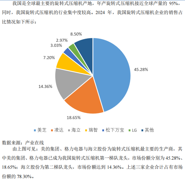 招股说明书显示,空调压缩机市场的集中度较高,美的集团、格力电器等龙头企业占据主要的市场份额,并且市场集中度呈现出逐年上升的趋势。