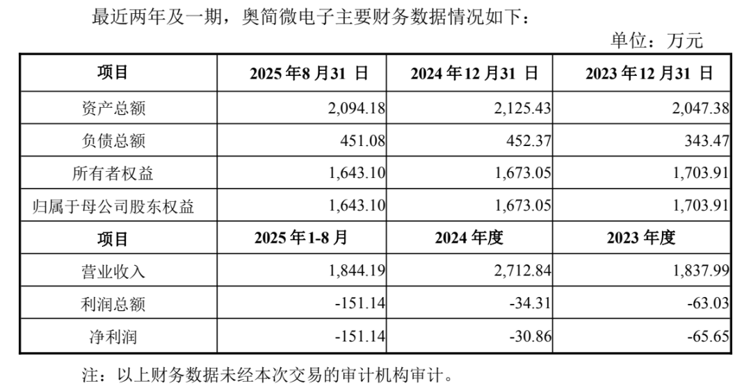 据悉,奥简微电子在电源管理芯片领域的部分产品可对标德州仪器等全球知名芯片公司的产品,产品性能指标已达到或超过国际品牌的同类产品标准。2025年1-8月,奥简微电子实现营业收入1844.19万元,实现净利润-151.14万元。