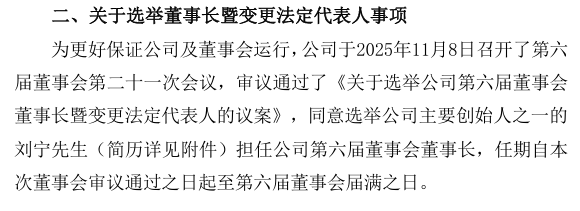 同日,会畅通讯(300578)公告称,公司于2025年11月7日召开2025年第二次临时股东会,同意补选何飞为公司第五届董事会非独立董事。公司还召开了第五届董事会第十三次会议,审议通过《关于选举公司第五届董事会董事长的议案》,董事会选举何飞担任公司新任董事长,任期自本次董事会审议通过之日起至第五届董事会任期届满日止。