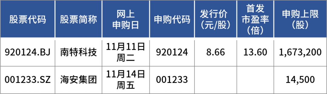 据目前安排,若无变化,下周(11月10日至14日)有2只新股可申购,分别为深市主板1只和北交所1只。