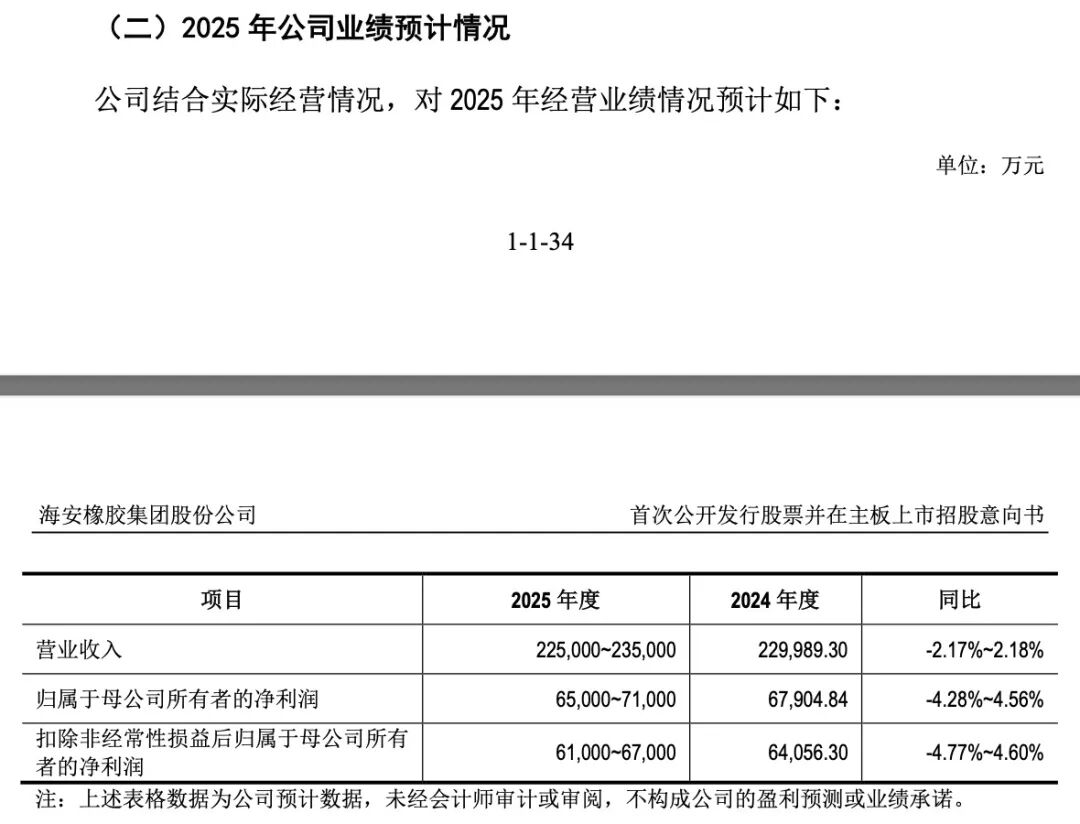 海安集团招股书称,预计2025年全年实现净利润6.5亿元至7.1亿元,同比变动-4.28%至4.56%。
