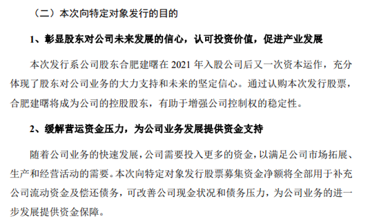 就此次向合肥建曙发起定增,维信诺表示,本次发行系合肥建曙在2021年入股公司后又一次资本运作,充分体现了其对公司业务的大力支持和未来的坚定信心。通过认购本次发行股票,合肥建曙将成为公司的控股股东,有助于增强公司控制权的稳定性。
