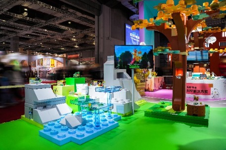 本届进博会上,乐高集团在展台打造了一座“可持续公园”,宣布了其在材料、包装、减少碳排放方面的最新可持续发展进展。在这座“可持续公园”中,乐高集团展示了多个由可持续材料生产的乐高®元件,包括从巴西甘蔗中提炼的生物聚乙烯(bio-PE)材料,其已被用来制作200多种不同的植物元件及小人仔配件;由再生人造大理石(arMABS)材料制成的元件,则被应用于制作光剑、风挡和窗户等900多种透明元件。目前,这些可持续材料均已应用在乐高集团嘉兴工厂。