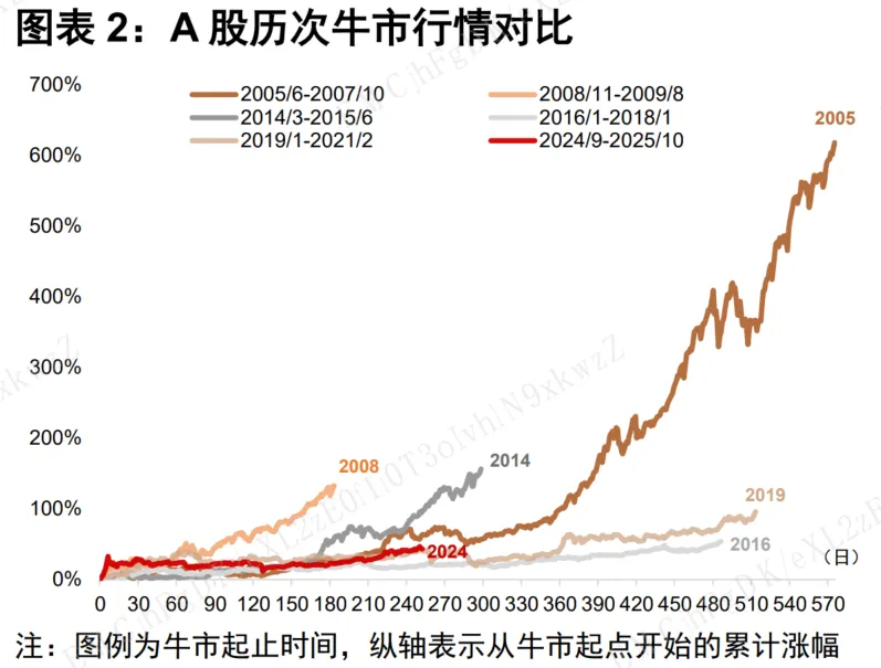 2025年开启的“资产重估”牛市的空间与节奏:①空间上,证券化率为判断指数牛/估值牛空间较为有效的参考指标,证券化率到1.1倍之前,仓位仍是胜负手。②节奏上,在“资产重估”后,我们认为2026年前后更可能出现“平顶过渡至慢牛延续”,而非“尖顶短牛”。“平顶”后迎来“盈利修复”慢牛:证券化率上行后,资本市场或将不是急坠,而是寻找新的稳定中枢。