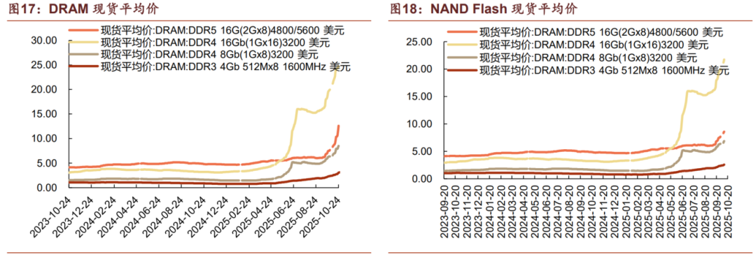 三星和海力士计划四季度继续调整报价,AI催生了对存储的性能和容量的升级需求,美光数据显示,AI服务器的DRAM容量需求是普通服务器的8倍,NAND容量需求达到3倍,HBM消耗的晶圆容量是标准DRAM的多倍。我们认为,存储原厂此前减产效应显现,供需关系好转,且AI拉动HBM、ESSD等存储需求提升,另外,消费电子旺季备货、补库存需求提升,有望共同带动存储价格回升趋势延续。
