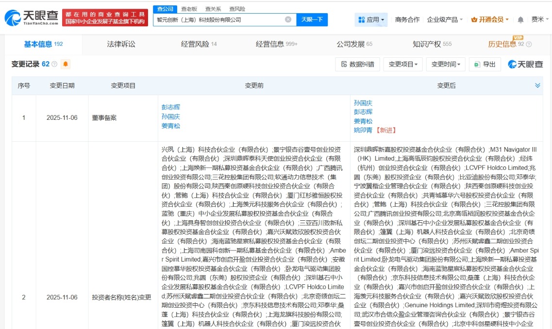 每经AI快讯,天眼查工商信息显示,近日,智元机器人关联公司智元创新(上海)科技有限公司发生工商变更,企业名称变更为智元创新(上海)科技股份有限公司,同时多位主要人员发生变更。该公司成立于2023年2月,法定代表人为邓泰华,注册资本约8264万元人民币,经营范围包括智能机器人的研发、服务消费机器人销售、智能机器人销售等。股东信息显示,该公司由桑蓬(上海)科技合伙企业(有限合伙)、广西腾讯创业投资有限公司、比亚迪等共同持股。