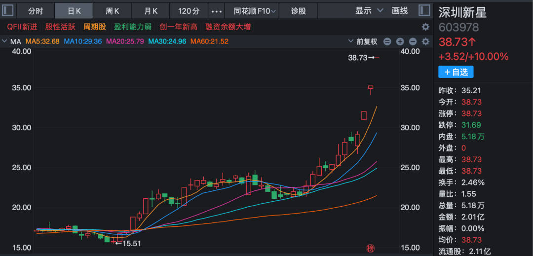 有色板块走强,国城矿业、深圳新星涨停,斯瑞新材、华钰矿业、江南新材、湖南黄金等涨幅居前。