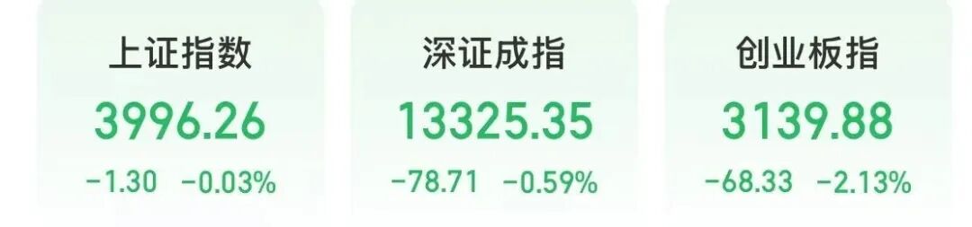 截至上午收盘,上证指数下跌0.03%,深证成指下跌0.59%,创业板指下跌2.13%。