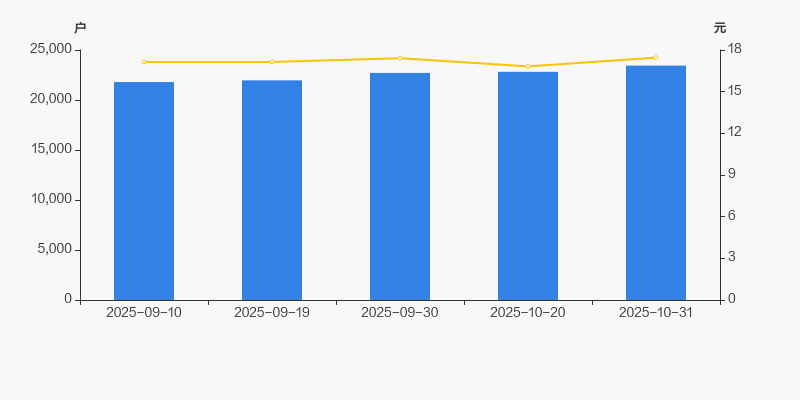 截至2025年10月31日,公司最新总股本为2.83亿股,其中流通股本为2.35亿股。户均持有流通股数量由上期的1.03万股下降至1万股,户均流通市值17.48万元。