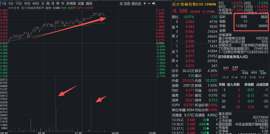 九安医疗强势涨停!医疗器械指数ETF(159898)涨1.75%、盘中净流入约640万元