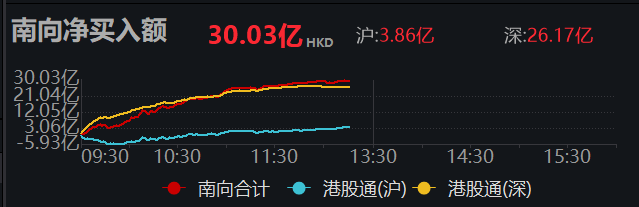 上证报中国证券网讯 11月10日13时15分,南向资金净买入超30亿港元。