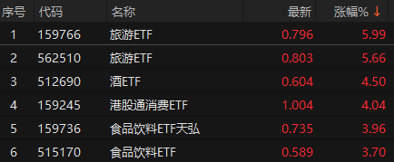 ETF收盘:旅游ETF涨5.99% 科创信息ETF跌2.44%