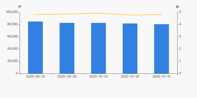 自2025年9月19日以来,公司股东户数连续4期下降,截至目前减幅为5.14%。2025年9月19日至2025年10月31日区间股价下降0.00%。