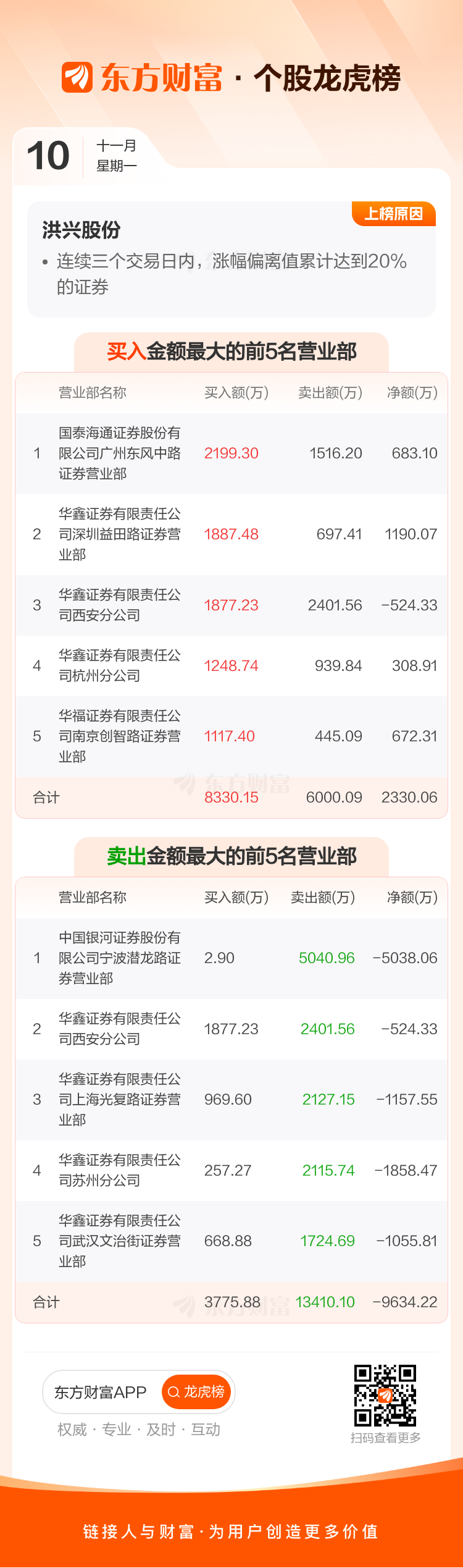 洪兴股份(001209)龙虎榜数据(11-10)
