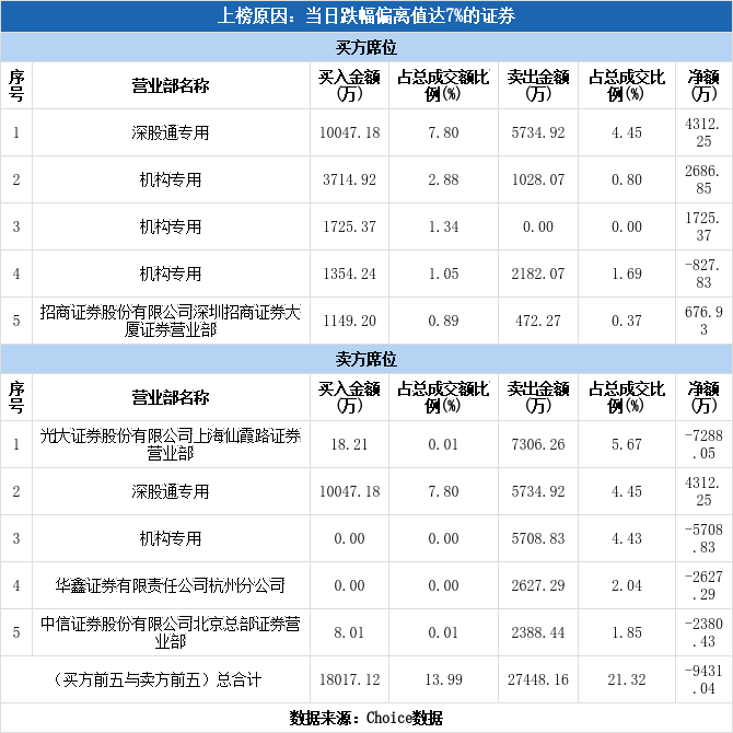 今日龙虎榜单上出现了深股通的身影,占据了买一、卖二的位置,净买入4312.25万元,占当日成交总额的3.35%。