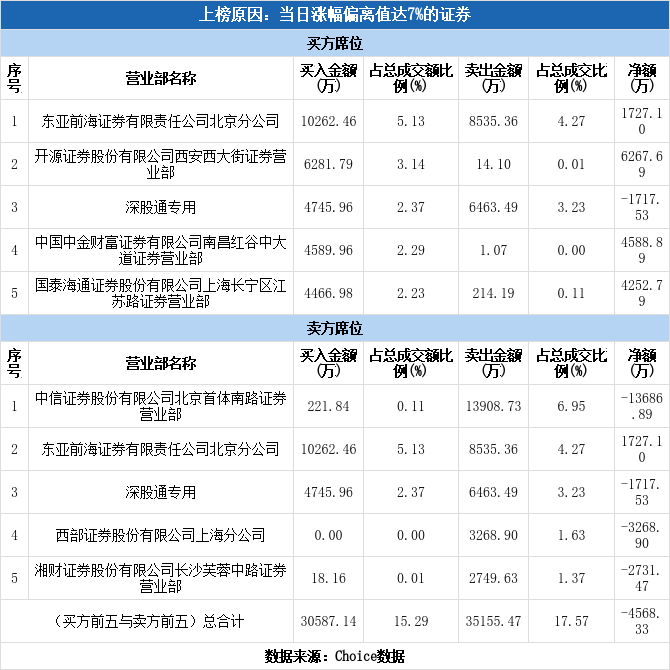 深股通现身龙虎榜,东北证券涨停(11-10)