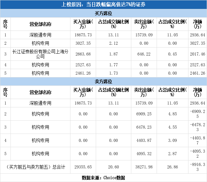 今日龙虎榜单上出现了深股通的身影,占据了买一、卖一的位置,净买入2936.64万元,占当日成交总额的2.06%。