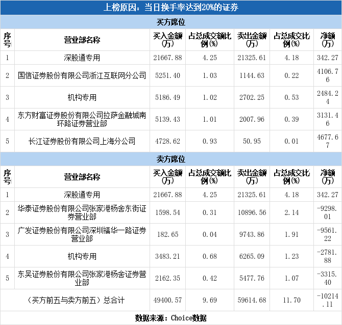 多主力现身龙虎榜,海陆重工换手率达54.19%(11-10)