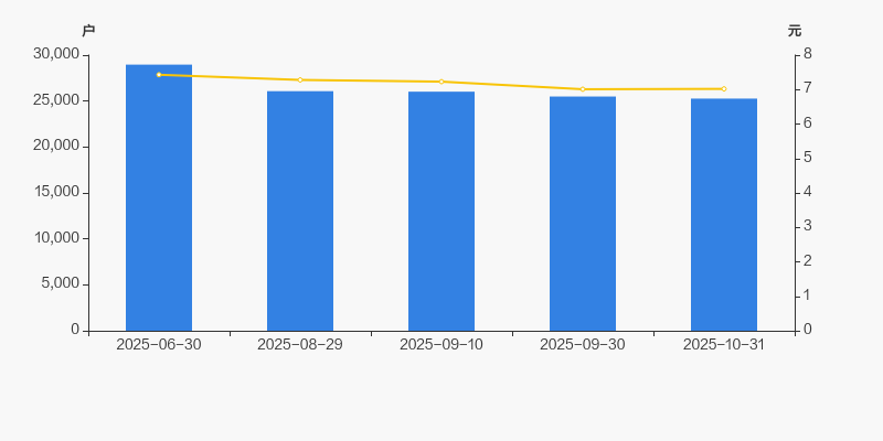 2025年6月30日至今,公司股东户数显著下降,区间跌幅为12.77%。2025年6月30日至2025年10月31日区间股价下降5.52%。